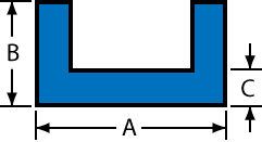 2-1/2" {A} x 1-1/2" {B} x 1/8" {C} Channel 6063-T52 Aluminum, Extruded